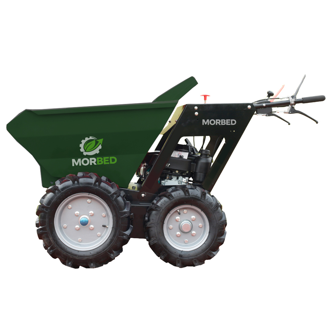 Morbed BY300S motorlu el arabası, 4 tekerlekten çekişli (4WD) yapısı ve yüksek performanslı hidrolik tasarımıyla ağır yüklerin taşınması için özel olarak geliştirilmiştir. Ana parçaları Amerika Birleşik Devletleri'nden ithal edilen bu güçlü makine, tuğla, kum, taş, odun ve tarım ürünleri gibi çeşitli materyalleri her türlü sahada kolayca taşımak için tasarlanmıştır. Ticari sınıf Honda GXV160 5.5HP motoru ve kademesiz hız değişimi sağlayan hidrolik pompa sistemi sayesinde kullanıcıya üstün bir kontrol ve akıcı sürüş deneyimi sunar. 78 cm'lik dar genişliği ile dar geçitlerden ve kapılardan rahatça geçebilirken, 300 kg'lık taşıma kapasitesiyle iş verimliliğini maksimuma çıkarır. Sıcak daldırma galvaniz veya plastik püskürtme ile kaplanmış dayanıklı haznesi ve manuel yük boşaltma sistemiyle uzun ömürlü ve ekonomik bir kullanım sağlar.